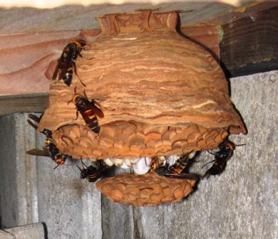 ヒメスズメバチはとてもおとなしく、巣の規模も小さいです。また木の空洞、屋根裏などの閉鎖空間に巣を作るという性質があります。