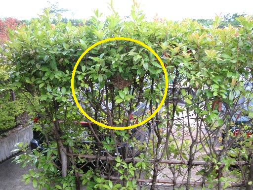 ・開放空間では屋根の軒下、車庫の屋根の下、庭木の中などによく巣が出来る。