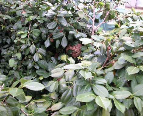 ◆庭木の中のスズメバチの巣