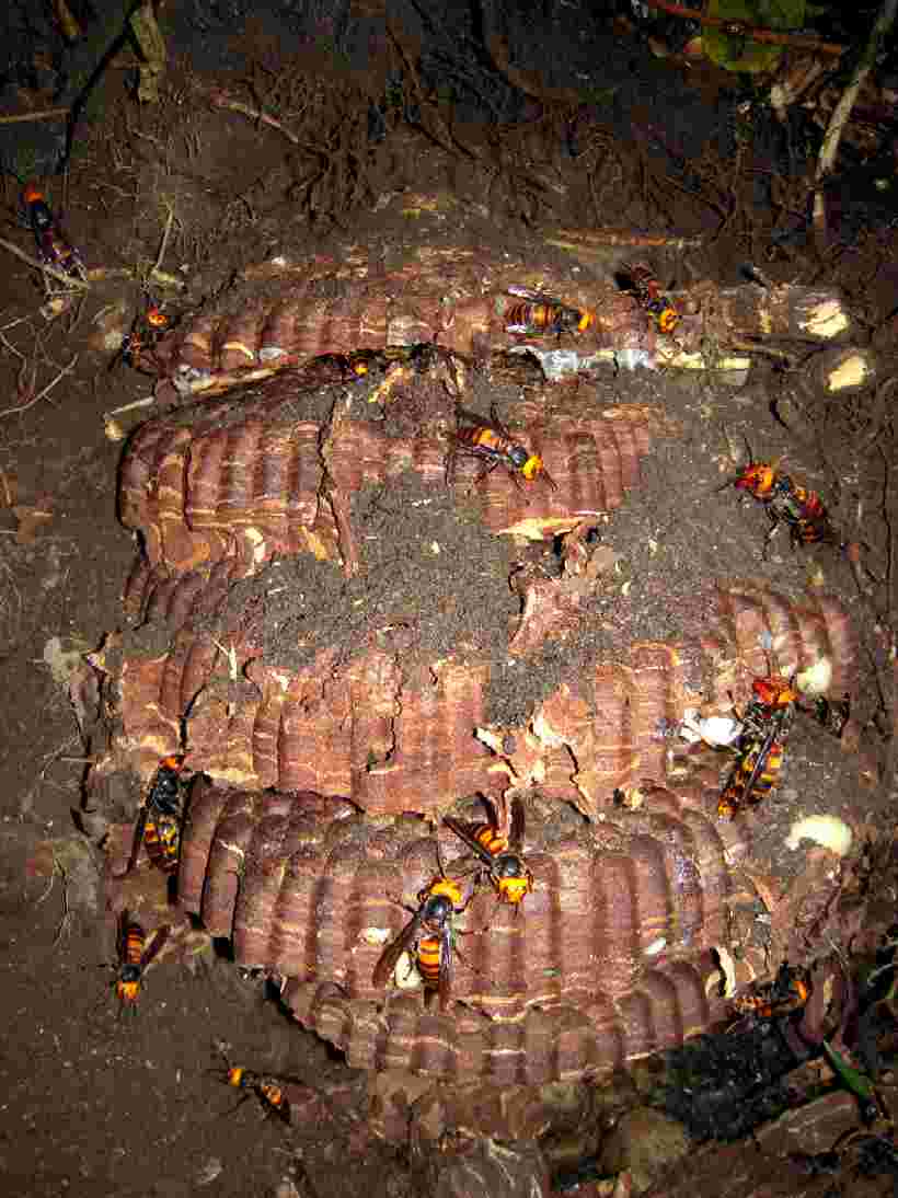 土の中に営巣していたオオスズメバチ