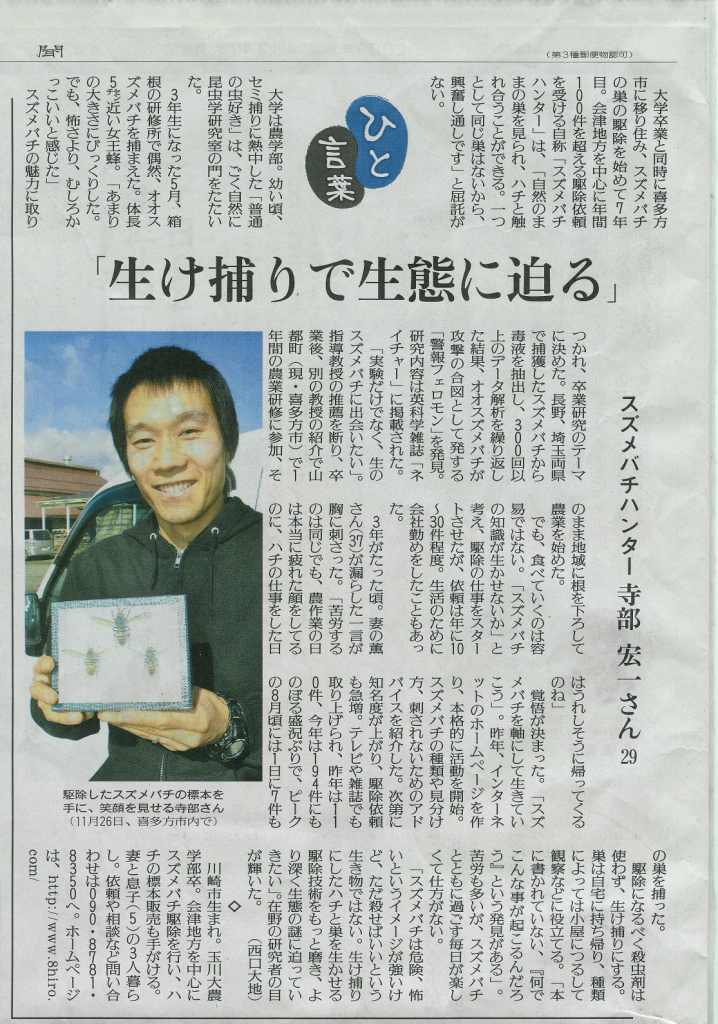 読売新聞(福島県) 2009年(平成21年)12月7日(月曜日)朝刊より